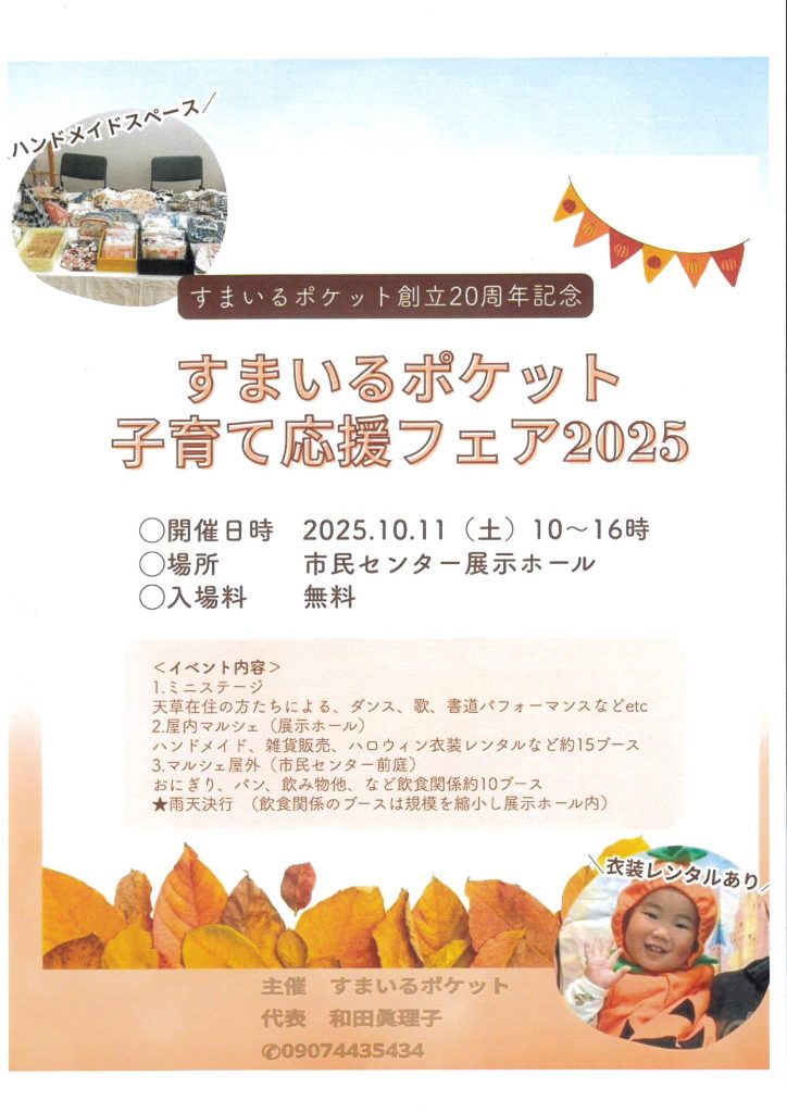 2025年10月5日 / 最終更新日時 : 2025年10月5日 centeradmin 展示ホール すまいるポケット 子育て応援フェア2025イベント詳細日付: 2025年10月11日 10:00 – 16:00会場: 展示ホールFacebookXBlueskyHatenaCopy